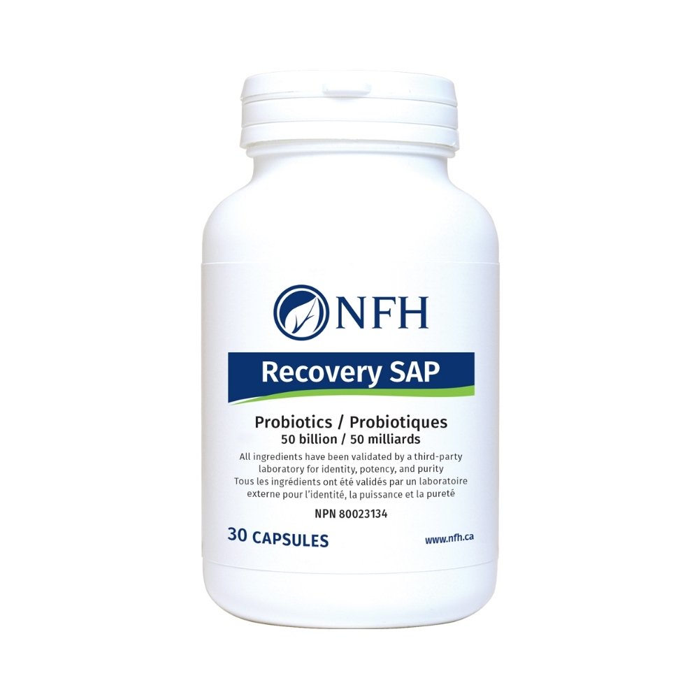 Recovery SAP is a science-based, high-potency probiotic formula delivering 50 billion CFU per enteric-coated capsule across 10 clinically studied strains. Designed for intensive gastrointestinal recovery, it restores healthy intestinal microflora following antibiotic use, IBS flares, or digestive distress. Multi-strain formulation provides broad-spectrum benefits including inhibiting pathogenic bacteria, reducing inflammation, supporting immune function via IgA secretion, and improving digestive balance. Contains prebiotic inulin and arabinogalactan. Enteric-coated for targeted delivery. Free from gluten, wheat, corn, eggs, yeast, and artificial additives.